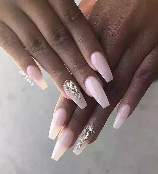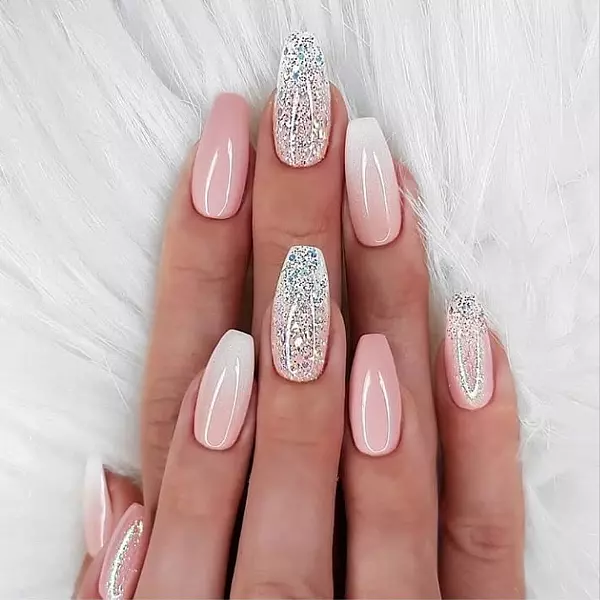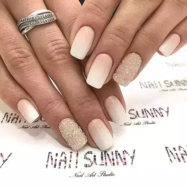 Nude Ombre with Glitter Accent Wedding Nails