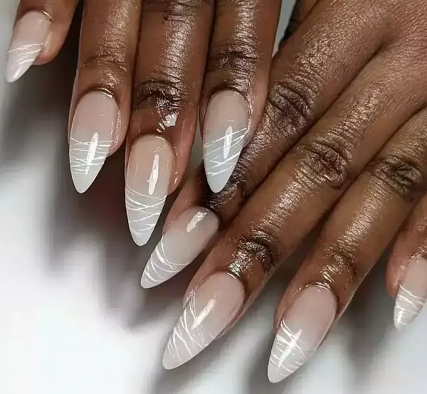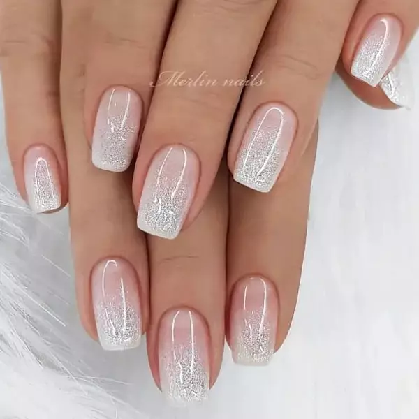 Simple White Glittery Ombre Wedding Nails