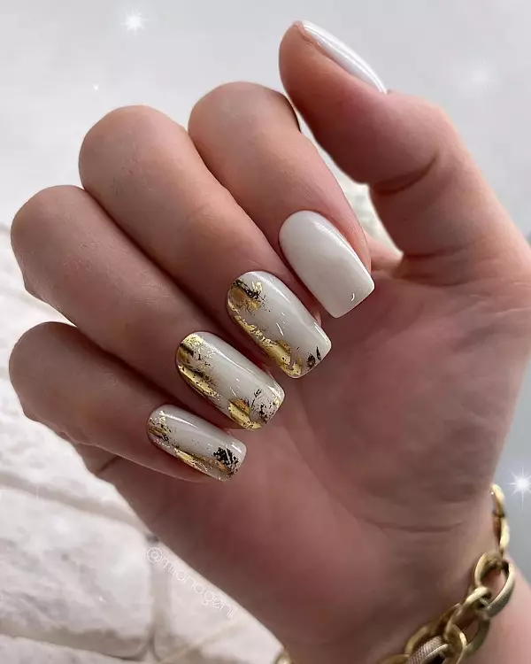 White and Golden Wedding Nails