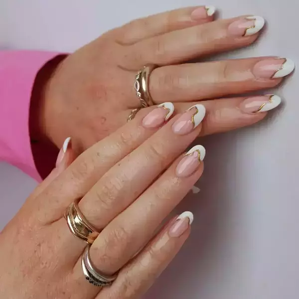 White French Tips with Gold Swirl Wedding Nails