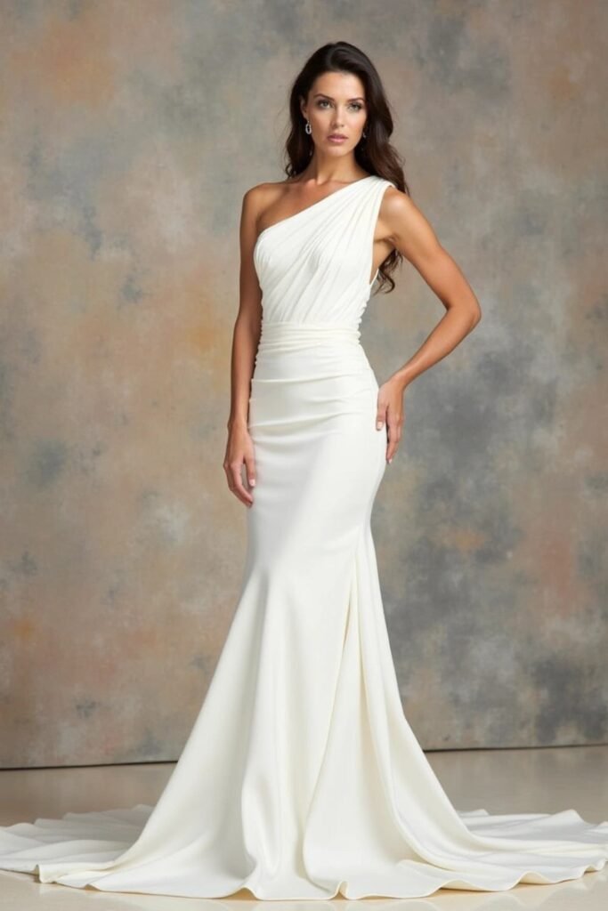 One Shoulder Draped Satin Gown
