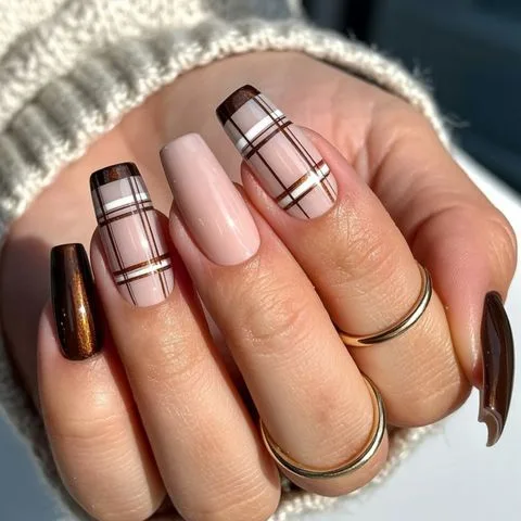 Whether you lean toward soft, neutral plaids or bold, colourful checks, this pattern adds depth, texture, and personality to your nails.