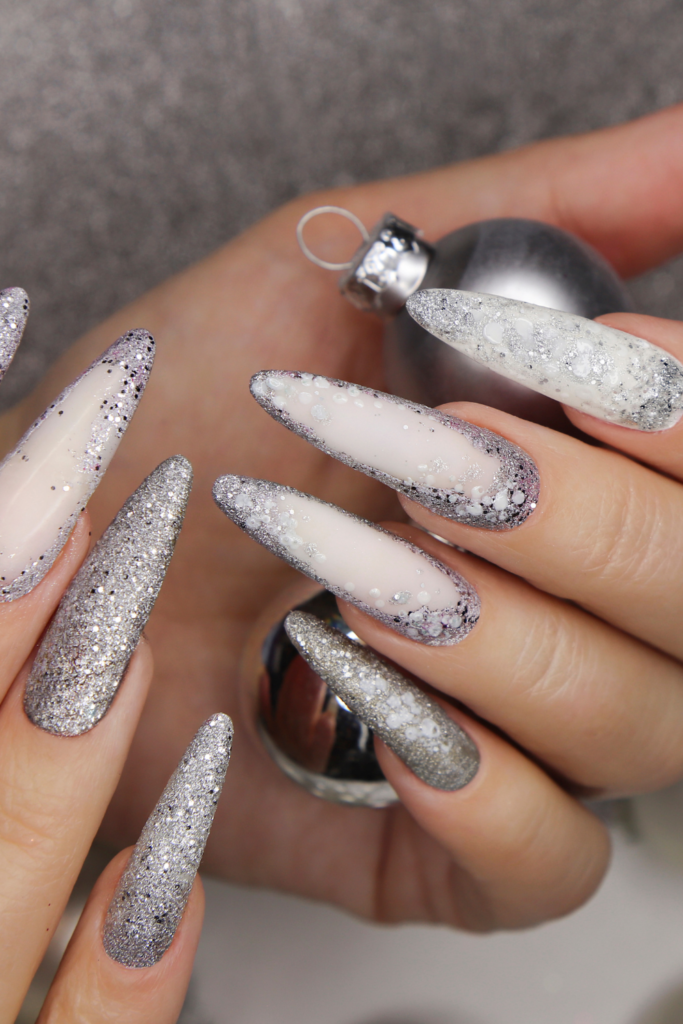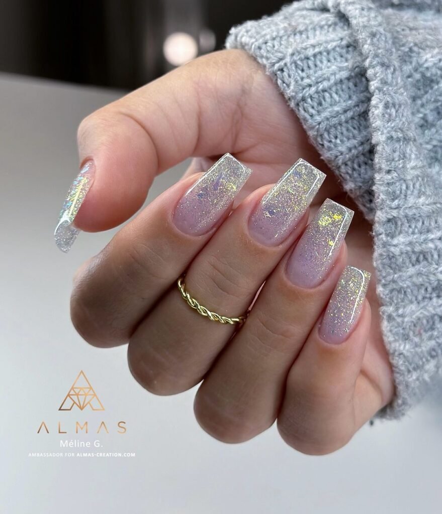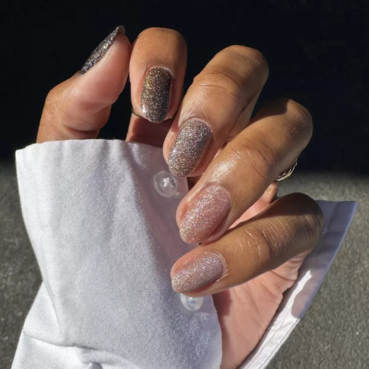 Think sheer glitter overlays, glitter French tips, accent nails, or fine shimmer paired with neutral shades. On the other end of the spectrum, chunky glitter, chrome-glitter mixes, and holographic finishes create dramatic, statement-making manicures that are perfect for celebrations, holidays, and nights out.