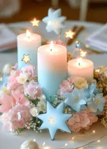 able Centerpieces – Mini diaper cakes, stuffed animals, or flower arrangements with baby items like pacifiers or rattles.