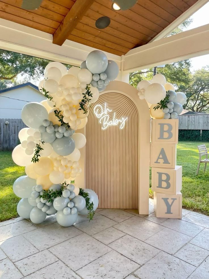Themed Balloons – Think pastel colors, giant number balloons for the baby’s birth date, or cute shapes like stars and clouds.