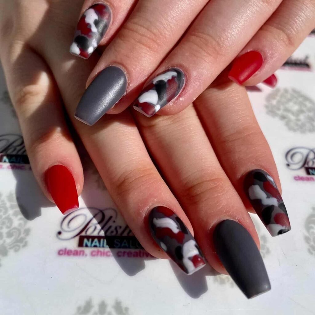 Camo nails also work beautifully across all nail shapes and lengths. Short nails feel cool and understated with minimal camo detailing, while long coffin or almond nails provide the perfect canvas for layered camouflage patterns and bold colour blocking. Many nail lovers choose camo as an accent nail, pairing it with solid colours or French tips for a balanced, modern look that doesn’t overwhelm. This flexibility makes camo nails a go-to choice for both everyday wear and special occasions when you want something unique but still polished.