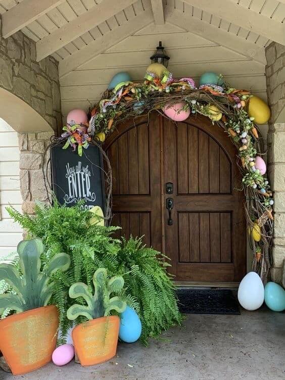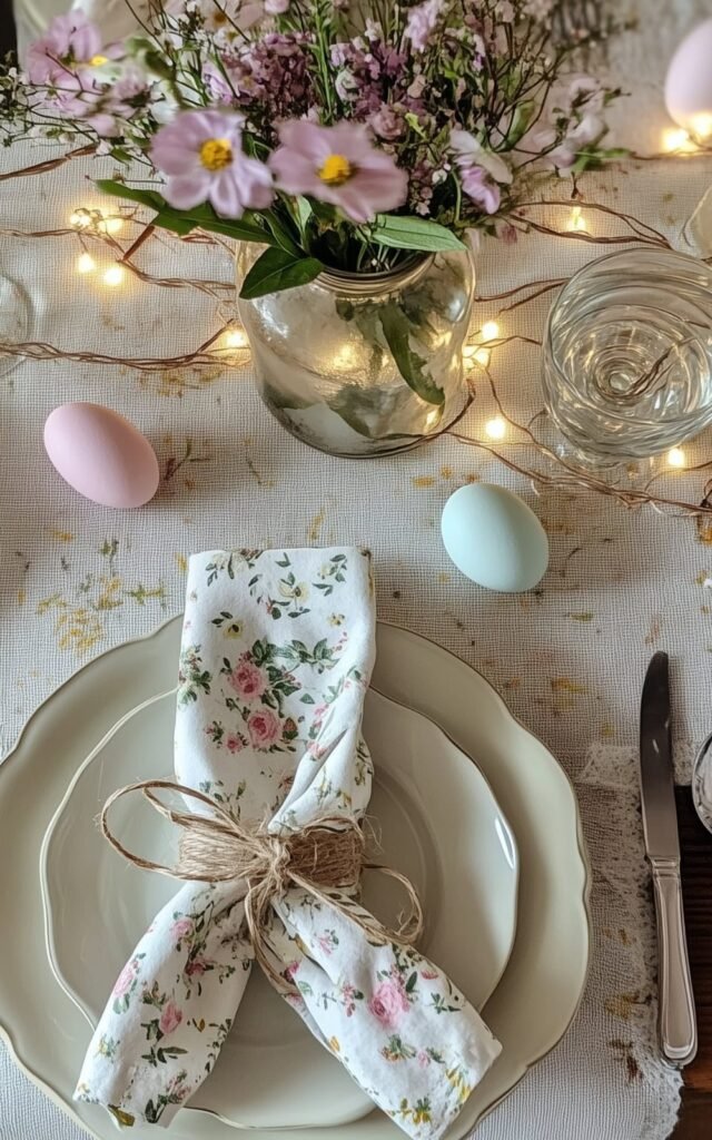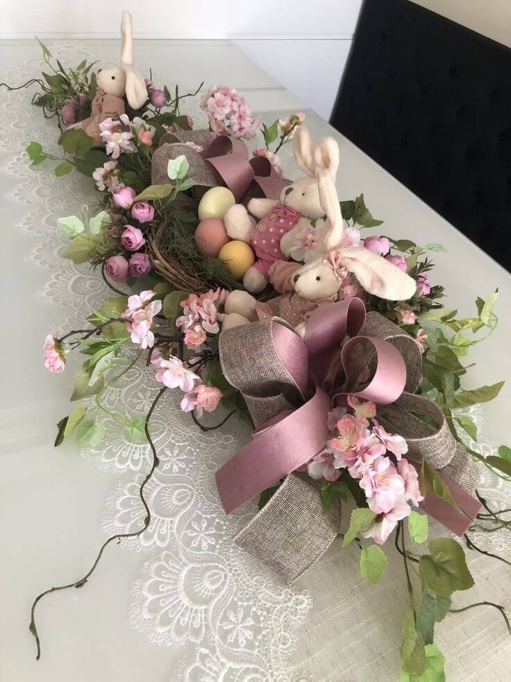 It’s also a wonderful chance to bring nature indoors. Think branches in vases decorated with hanging eggs, fresh greenery woven through garlands, and baskets filled with flowers or moss-covered accents.