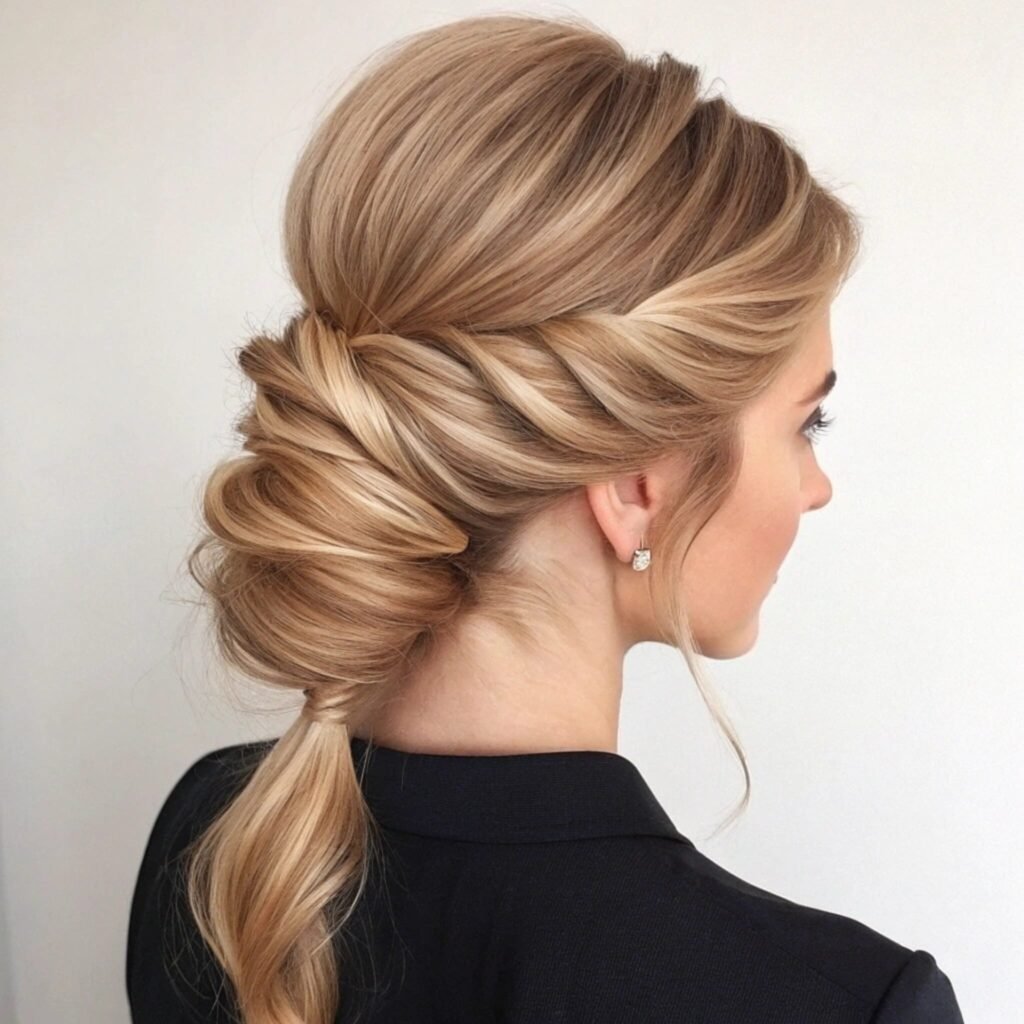 A chic upgrade to the classic pony. With its elegant twist and sleek finish, this style blends sophistication with ease, perfect for workdays or special nights out.