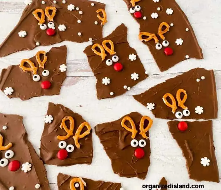 Bake gingerbread cookies and decorate with pretzels for antlers, red candies for noses, and chocolate chips for eyes.