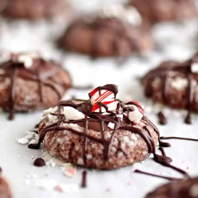 Melt white and dark chocolate, layer them, then sprinkle with crushed candy canes. Once set, break into rustic-looking shards.