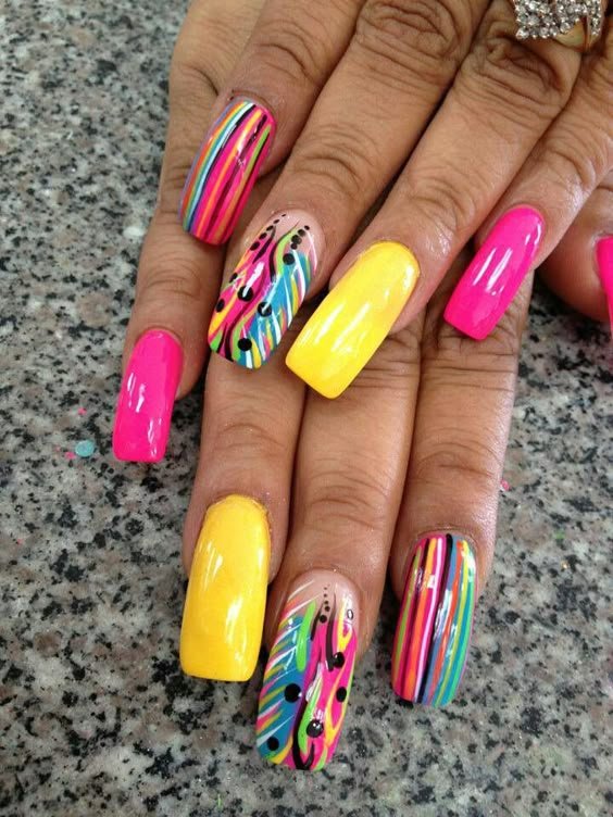 Funky nails also work beautifully across all nail lengths and shapes. Short nails can look just as bold with graphic patterns or colour-blocking, while longer nails offer extra space for detailed artwork and layered designs.