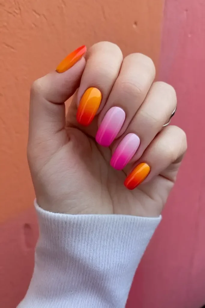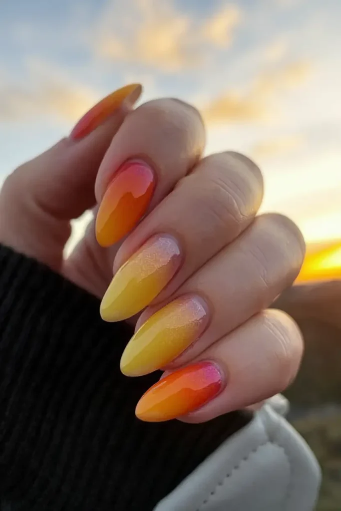 Whether you love a soft ombré, playful gradients, or detailed nail art with silhouettes like palm trees or clouds, sunset nails offer endless creative possibilities.