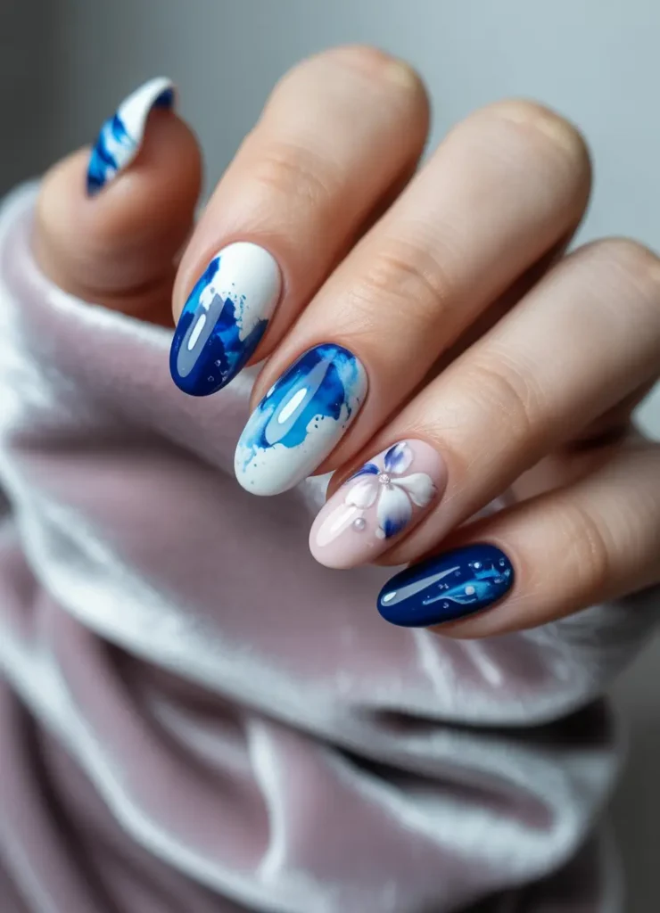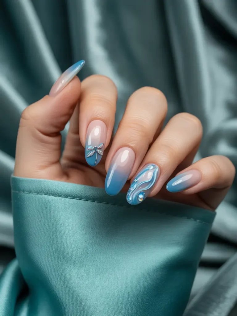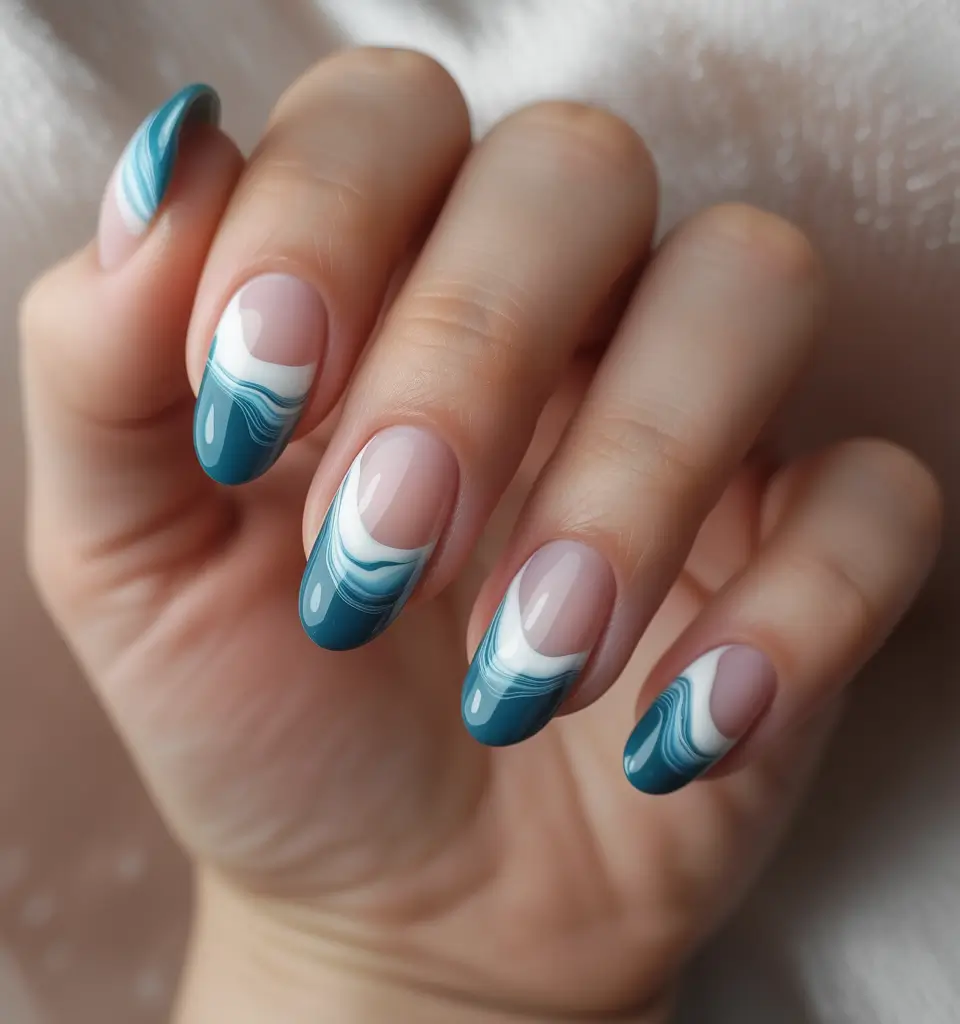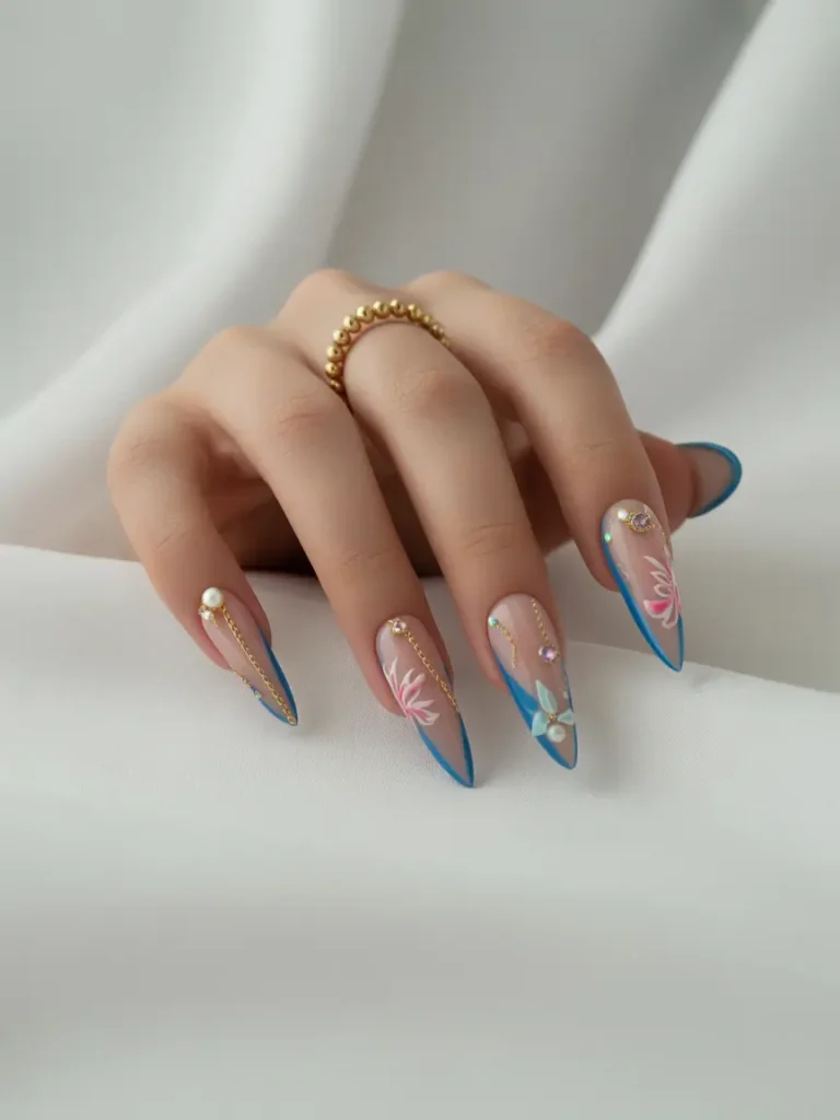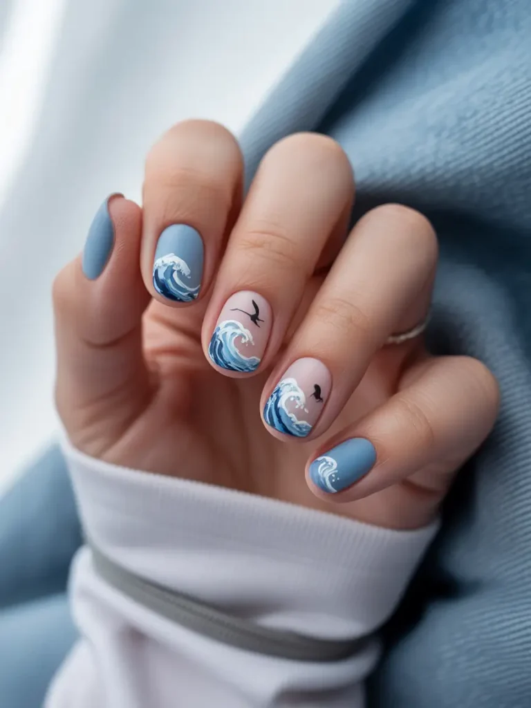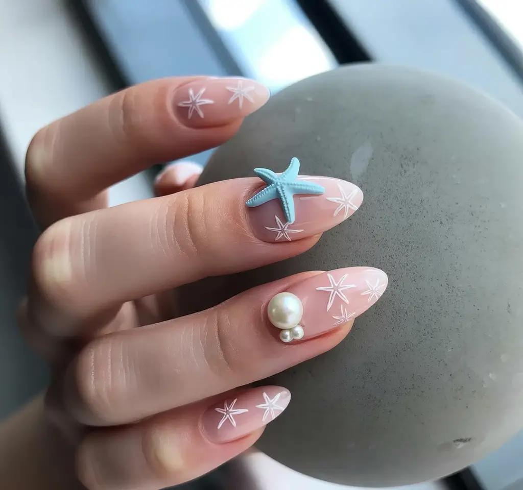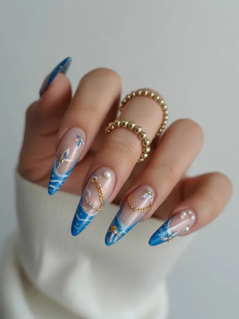 You can keep things simple with a tropical flower accent nail or go all out with detailed beach scenes and colorful floral patterns across every nail. Ombre sunsets, palm tree silhouettes, and glittery ocean-inspired nails are also popular ways to capture that tropical paradise look.