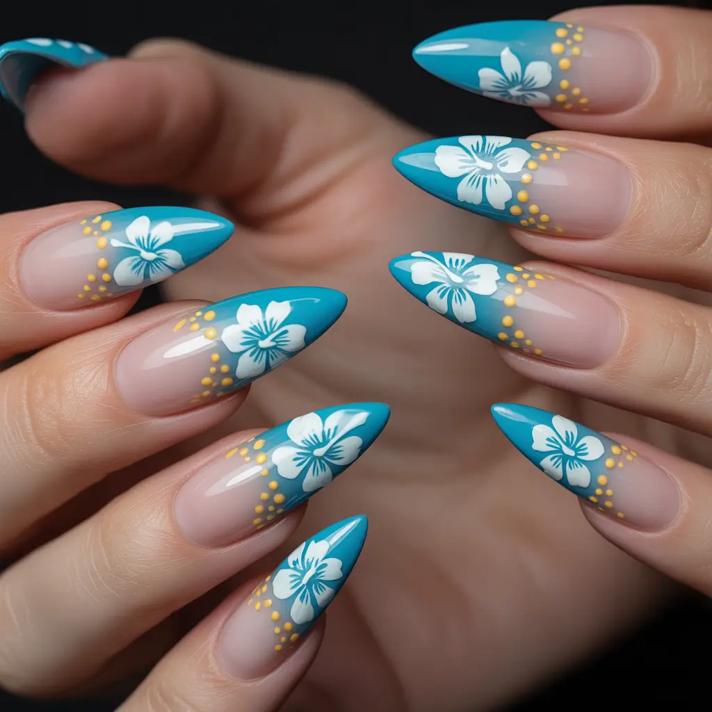 Hawaiian nails work beautifully on different nail shapes and lengths. Short nails can look adorable with tiny flowers or palm leaf accents, while longer nails allow for more detailed tropical artwork and vibrant color combinations.