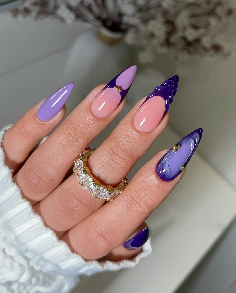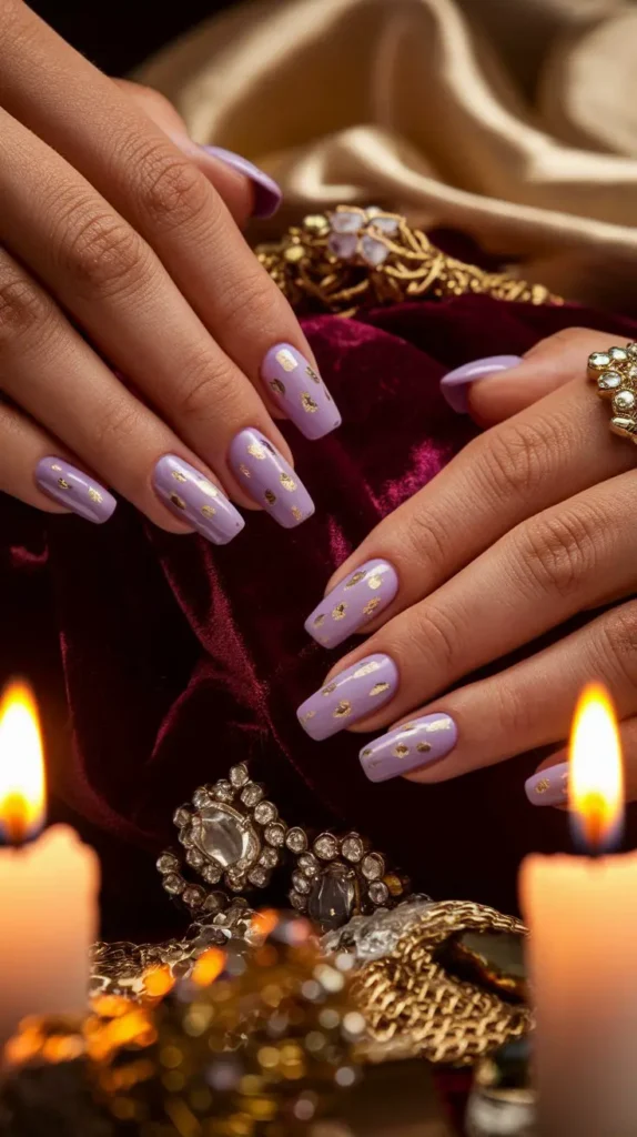 Lilac nails also work well with many nail shapes and lengths. Short square nails look clean and modern with a soft lilac polish, while long almond or coffin nails create a more glamorous statement.
