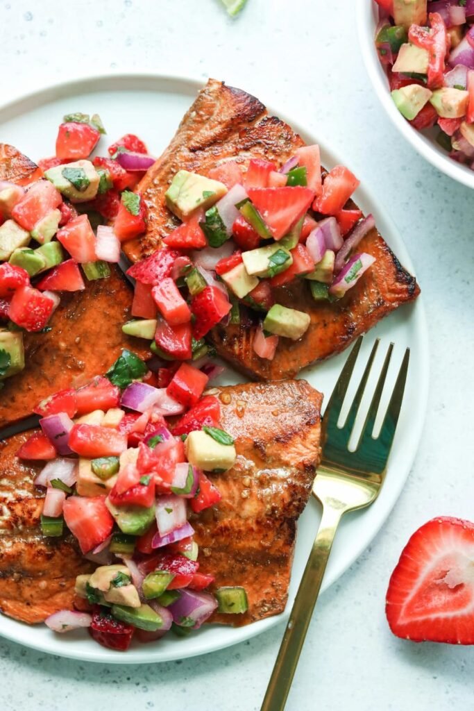 Looking for a light yet satisfying meal that’s bursting with color and flavor? This Balsamic Grilled Salmon with Strawberry and Avocado Salad is the perfect combination of sweet, savory, and refreshing. Juicy, caramelized salmon glazed with tangy balsamic pairs beautifully with the natural sweetness of ripe strawberries, creamy avocado, and crisp greens.