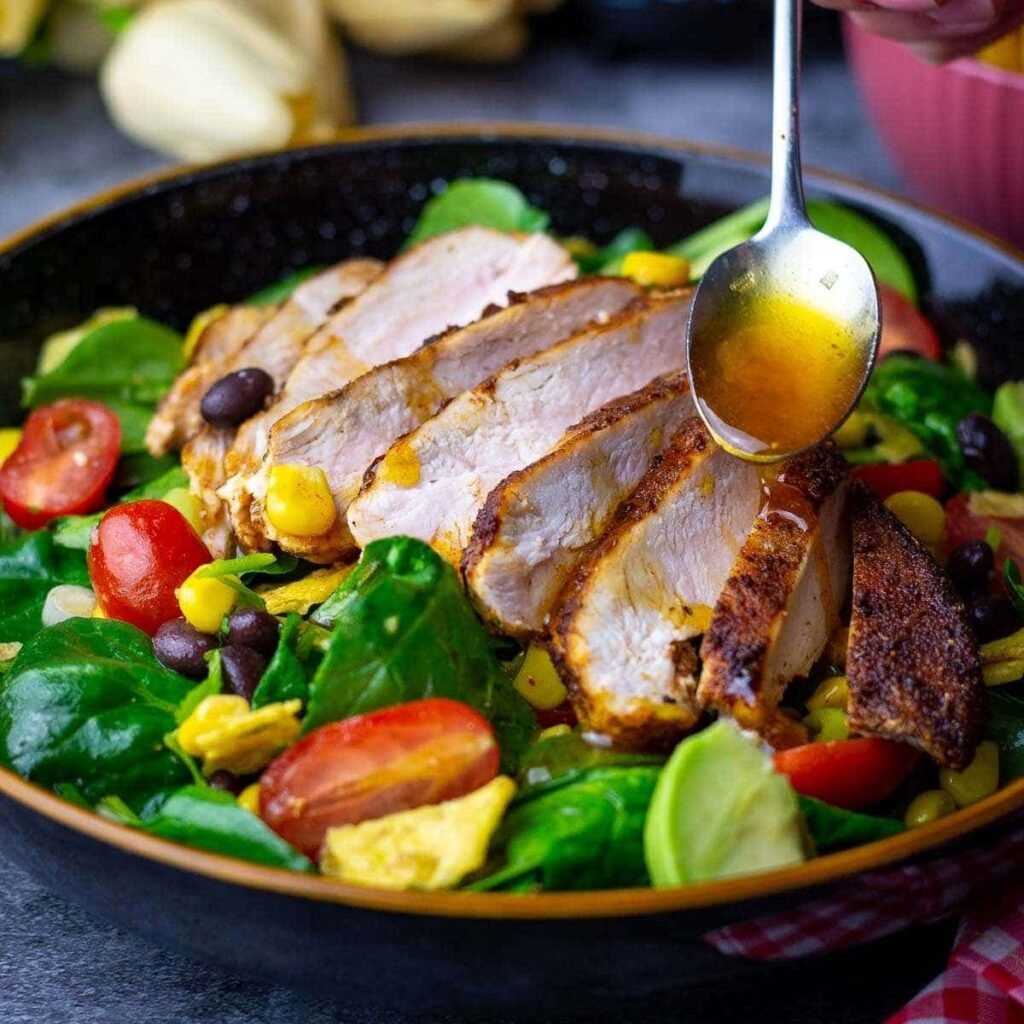 Bring a taste of the Southwest to your table with this vibrant Santa Fe Salad! Loaded with fresh greens, juicy grilled chicken, black beans, corn, avocado, and zesty peppers, this salad is a fiesta of flavors and textures. Topped with crunchy tortilla strips and a creamy, tangy dressing, it’s a satisfying meal that’s both healthy and delicious.