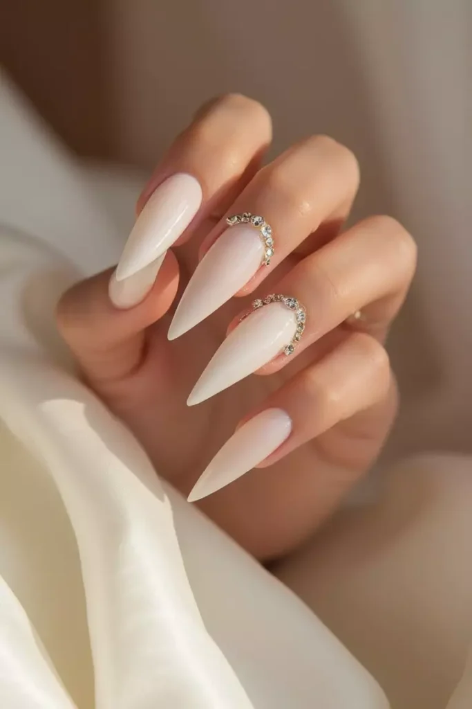 From timeless French tips to modern metallics, wedding nail designs range from simple and understated to intricate works of art. You can keep it classic with soft pinks and milky whites or add sparkle, lace designs, and delicate embellishments for a more glamorous touch.